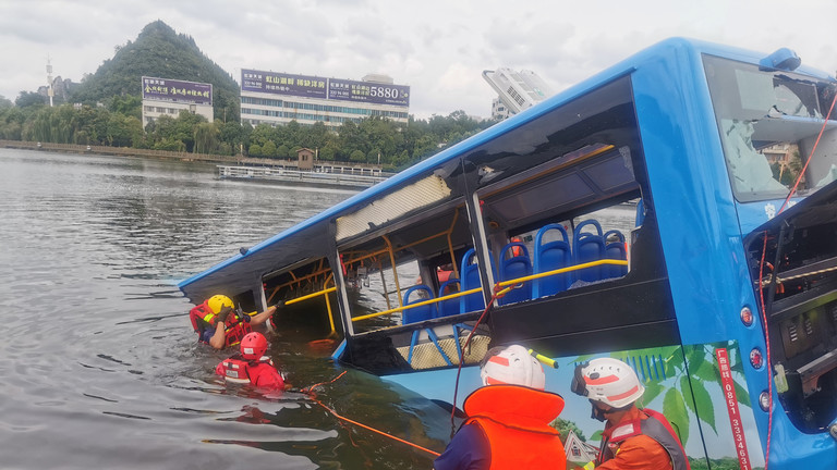Theo Global Times, vụ tai nạn xảy ra khoảng trưa thứ Ba, 7/7, tại thành phố An Thuận (tỉnh Quý Châu), sau khi chiếc xe buýt húc đổ lan can và lao xuống hồ chứa nước Hồng Sơn.