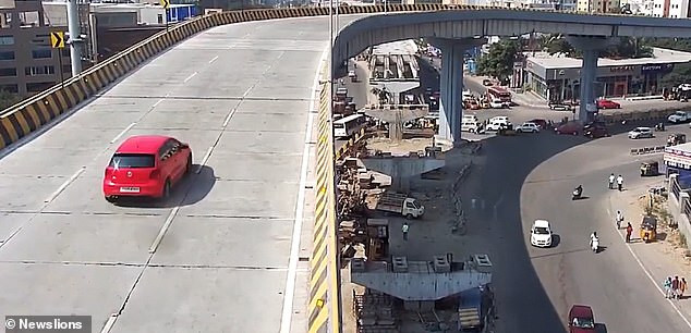Đoạn video từ hiện trường cho thấy chiếc xe bốn chỗ màu đỏ di chuyển với tốc độ cực nhanh trên cầu vượt ba làn.