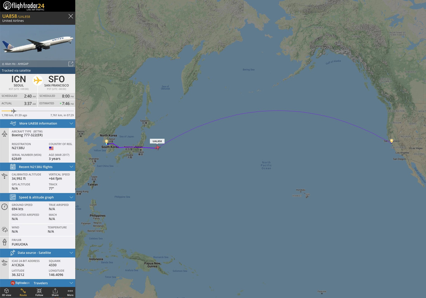 Cụ thể, chuyến bay mang số hiệu UA858 của United Airlines cất cánh lúc 3h37’ ngày 1/1/2021 (giờ địa phương) ở sân bay Seoul (Hàn Quốc) đã hạ cánh lúc 19h31’ ngày 31/12/2020 (giờ địa phương) tại sân bay San Francisco (Mỹ).