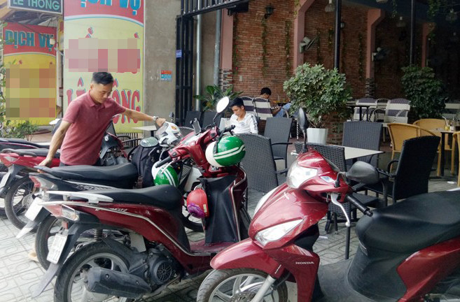 Dù muốn xem con trai thi đấu suốt trận đấu nhưng ông Quyền phải trông giữ xe cho khách phía ngoài quán cà phê