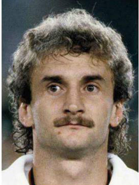 Rudi Voller (Đức 1988): Tiền đạo tuyển Đức, Rudi Voller đã trình làng kiểu tóc xoăn dài với bộ ria được tỉa tót cẩn thận ở World Cup 1990.