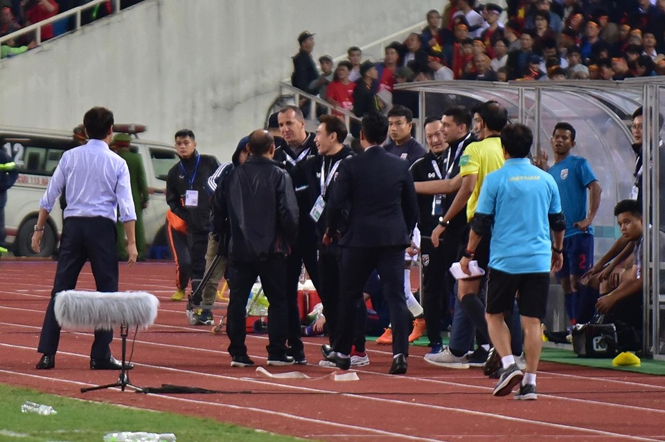 Nói về vụ việc này, HLV Park Hang Seo cho biết: "Người nói chuyện với tôi lúc đó hình như là trợ lý, và không phải người Thái Lan. Trong quá trình chỉ đạo, tôi thấy anh ta thỉnh thoảng cười mỉa tôi. Nếu anh ta thích chiến đấu, tôi sẵn sàng".