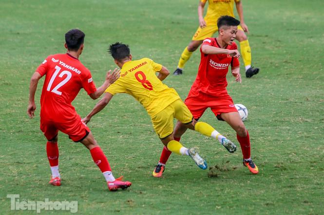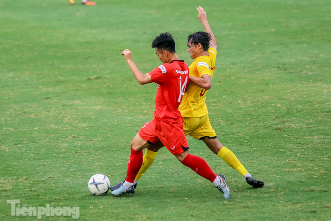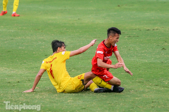 Để lọt vào "mắt xanh" của ông thầy người Hàn Quốc, các cầu thủ chơi mạnh mẽ, không ngại va chạm.