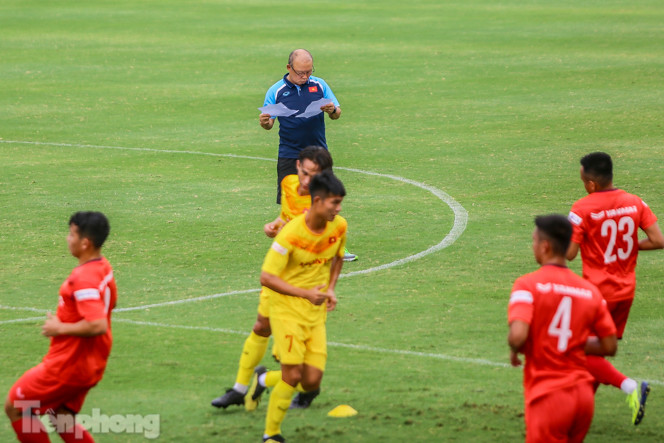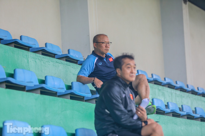 Thầy Park trực tiếp xem các cầu thủ thể hiện ở trận đấu nội bộ.