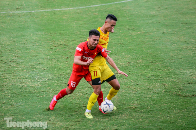 Các chân sút bỏ lỡ nhiều cơ hội trong trận đấu tập.