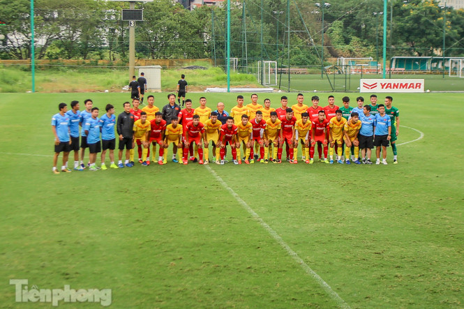 28 cầu thủ ở đợt hội quân lần này chụp ảnh lưu niệm cùng BHL trước trận.