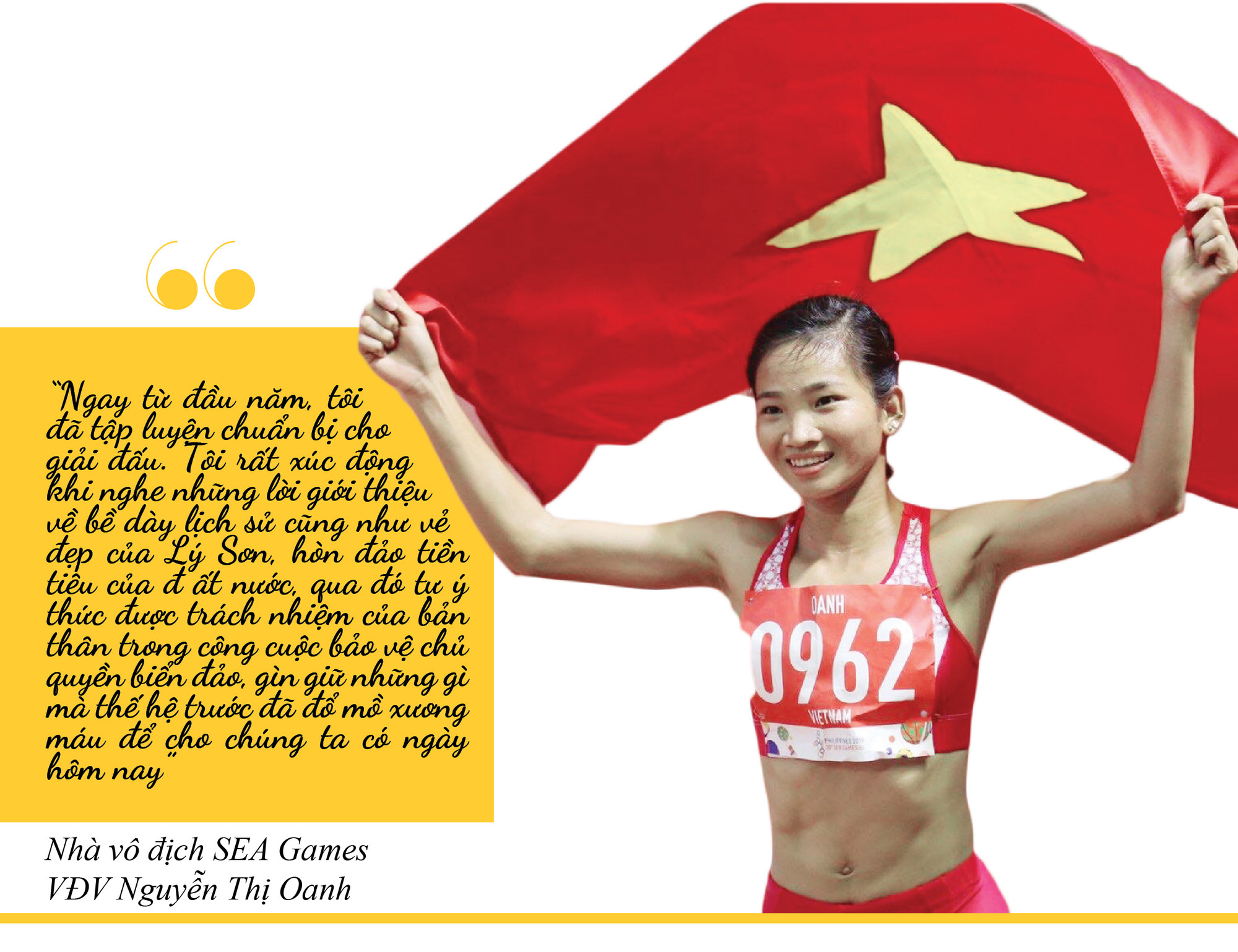 Cũng giống như VĐV Nguyễn Tiến Hùng, đây là lần đầu tiên nhà vô địch SEA Games VĐV Nguyễn Thị Oanh thi đấu trên một hòn đảo. "Ngay từ đầu năm, tôi đã tập luyện chuẩn bị cho giải đấu. Tôi rất xúc động khi nghe những lời giới thiệu về bề dày lịch sử cũng như vẻ đẹp của Lý Sơn, hòn đảo tiền tiêu của đất nước, qua đó tự ý thức được trách nhiệm của bản thân trong công cuộc bảo vệ chủ quyền biển đảo, gìn giữ những gì mà thế hệ trước đã đổ mồ xương máu để cho chúng ta có ngày hôm nay". Nguyễn Thị Oanh đã 3 năm liên tiếp vô địch cự ly 5km nữ tuyển. Vận động viên sinh năm 1995 cho biết đang nỗ lực tập luyện để bảo vệ ngôi vô địch của mình tại giải đấu diễn ra ở Lý Sơn sắp tới.