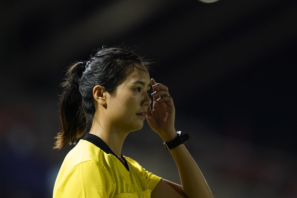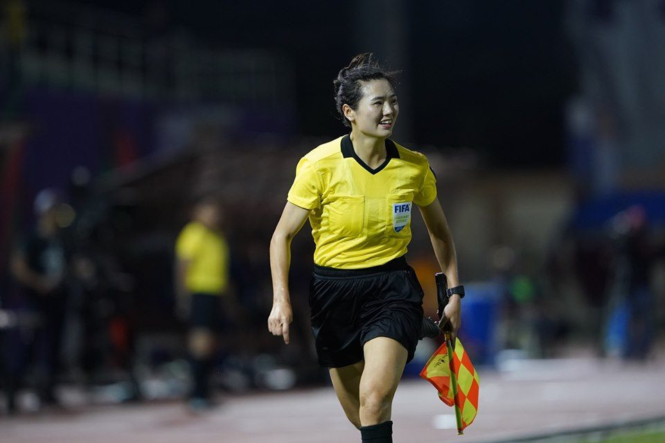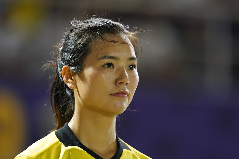 Tổ trọng tài điều khiển trận đấu giữa tuyển nữ Việt Nam và chủ nhà Philippnes ở bán kết bóng đá nữ SEA Games trên sân Binan tối qua gồm 4 người. Trọng tài chính Mi Siyu (ảnh- Trung Quốc) và hai trọng tài biên Xie Lijun (Trung Quốc) và Ogata Mio (Nhật Bản), còn trọng tài thứ tư là Cha Minji người Hàn Quốc.