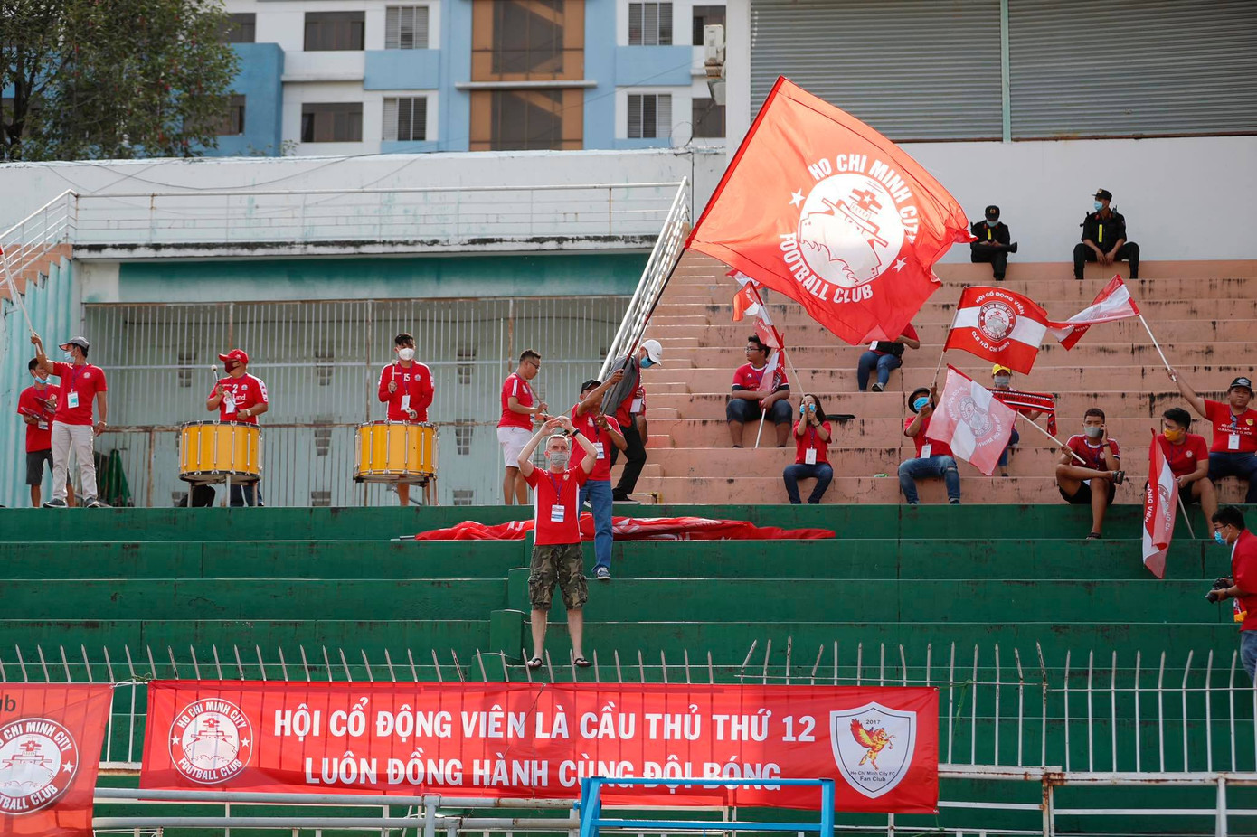 CĐV TPHCM trên khán đài sân Thống Nhất.