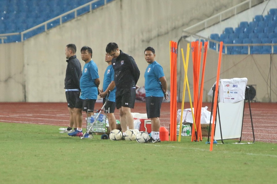 Vào 18h hôm này, tuyển Thái Lan đã có buổi tập làm quen với sân Mỹ Đình.