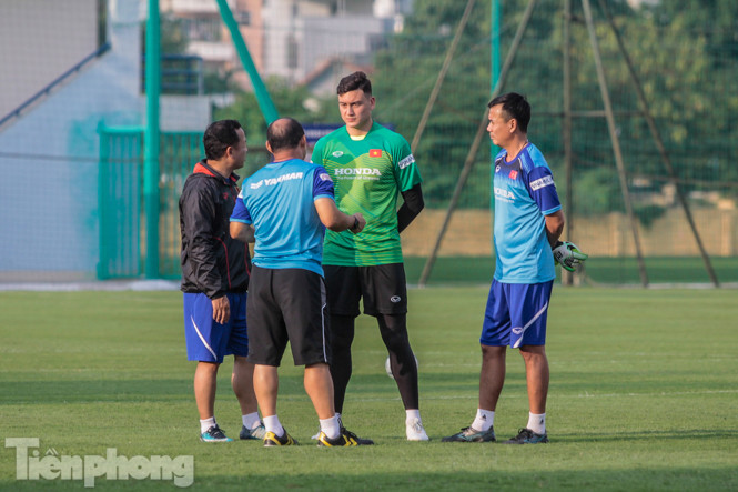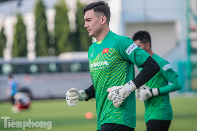 Chiều 5/10, Thủ môn Đặng Văn Lâm có buổi tập cùng các đồng đội tại tuyển Việt Nam. Cầu thủ này mới trở về Việt Nam vào ngày 4/10.