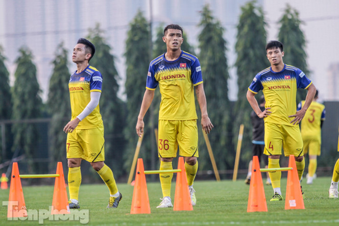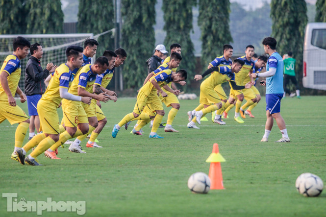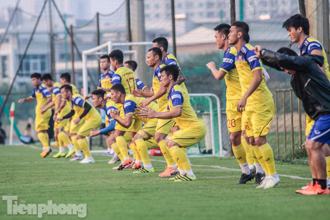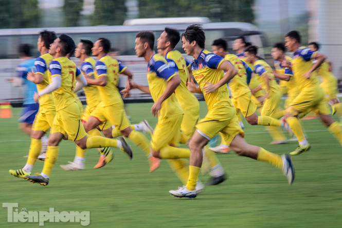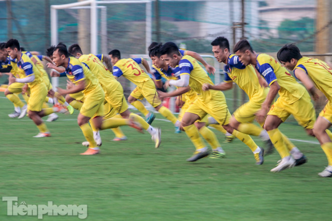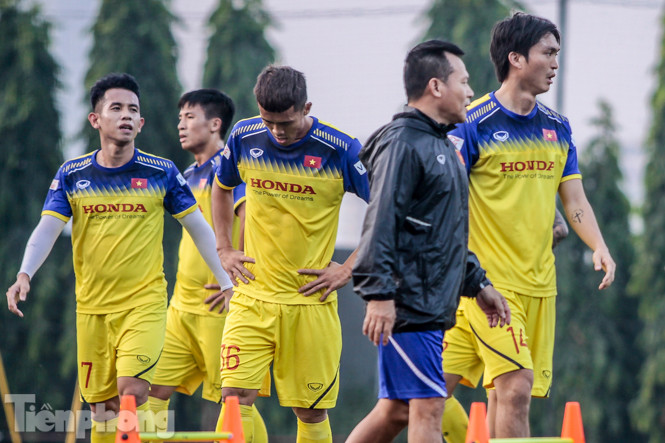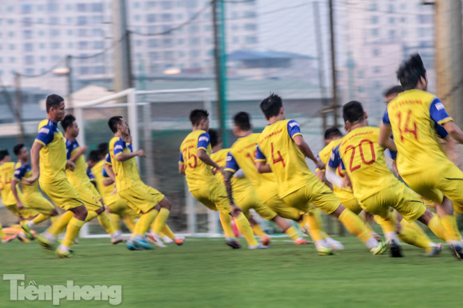 Ban huấn luyện của đội tuyển Việt Nam sử dụng một giáo án gồm khá nhiều những bài tập thể lực, khiến các cầu thủ mướt mồ hôi.