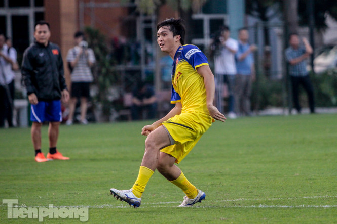 Buổi tập vắng mặt tiền vệ Lương Xuân Trường. Tiền vệ thuộc biên chế CLB Hoàng Anh Gia Lai bị đứt dây chằng chéo trước và phải dưỡng thương trong thời gian dài.