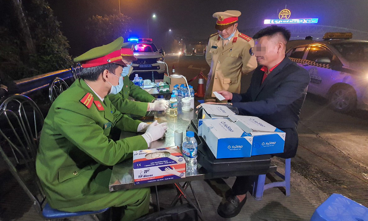 Tổ công tác lấy mẫu test nhanh tài xế. Gần 2h ngày 15/3, CSGT dừng chiếc xe ô tô BKS 30F do nam tài xế tên H. điều khiển tại km 188 cao tốc Pháp Vân – Cầu Giẽ. Kiểm tra nồng độ cồn, tài xế vi phạm mức 0.111 miligam/1 lít khí thở.