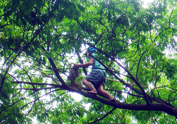| Trèo lên cây cao hàng chục mét chỉ với tay, chân trần. |
