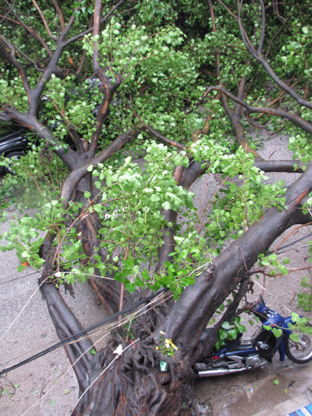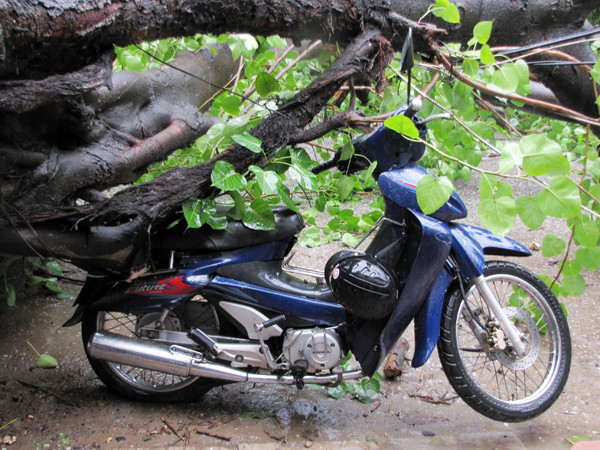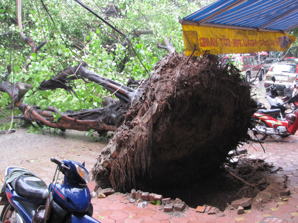 Do ảnh hưởng của cơn bão số 5, hôm qua tại phố Lê Duẩn (quận Hoàn Kiếm) cũng có một cây đa lớn đổ ập lên một chiếc ô tô và xe máy đang chạy giữa đường. Được biết, trên địa bàn Hà Nội, tối qua cũng có nhiều cây xanh bị gãy cành.