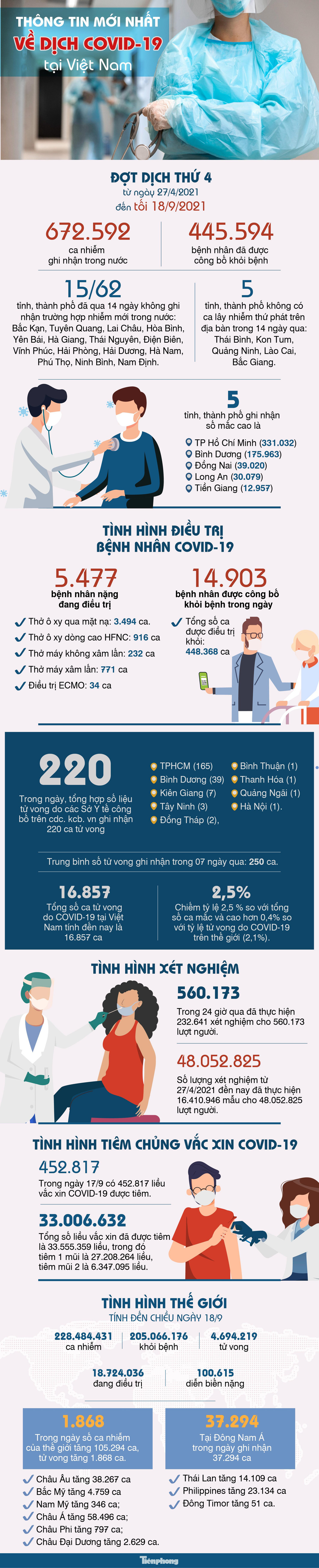 TPO - Kể từ đầu dịch đến nay Việt Nam có 677.023 ca nhiễm, đứng thứ 47/222 quốc gia và vùng lãnh thổ, trong khi với tỷ lệ số ca nhiễm/1 triệu dân, Việt Nam đứng thứ 156/222 quốc gia và vùng lãnh thổ (bình quân cứ 1 triệu người có 6.881 ca nhiễm).