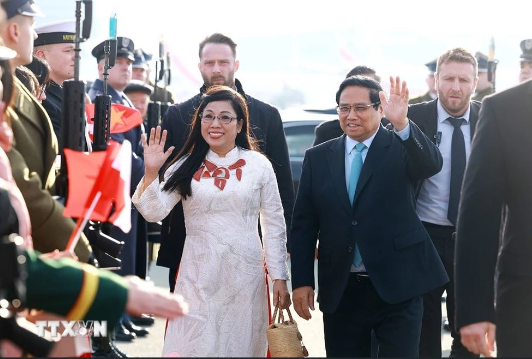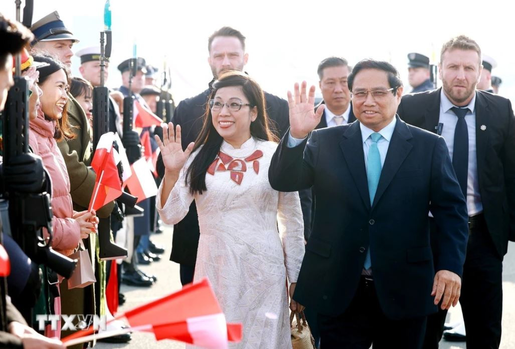 | Lễ tiễn Thủ tướng Phạm Minh Chính và Phu nhân kết thúc chuyến thăm chính thức Cộng hòa Ba Lan. (Ảnh Dương Giang/TTXVN). |