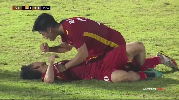 Trước đó, Văn Khang có pha va chạm và đã bị chảy máu mồm.