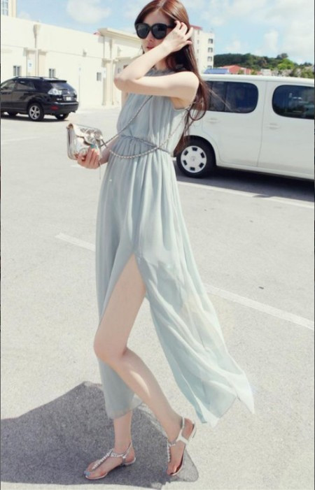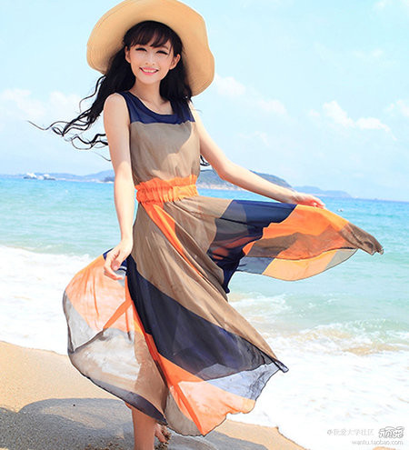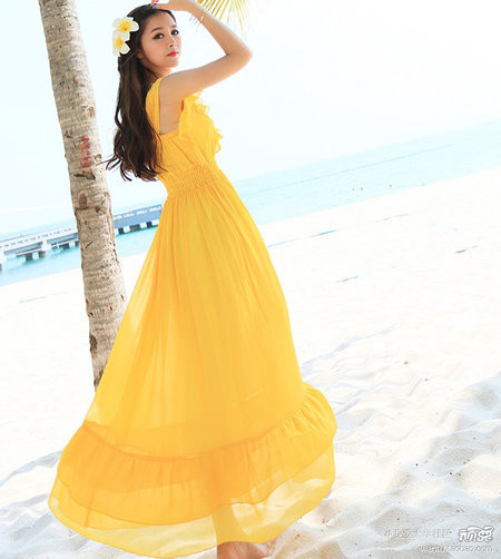 Mặc maxi vừa mát mẻ lại chống được phần nào tác hại của ánh nắng đối với làn da mỏng manh. Không những thế loại váy dài xinh xinh này còn tôn lên nét nữ tính, duyên dáng không thể phủ nhận được của bạn gái.