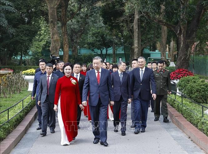 Tổng Bí thư Tô Lâm tại Khu di tích Chủ tịch Hồ Chí Minh trong Phủ Chủ tịch. Ảnh: Thống Nhất/TTXVN.