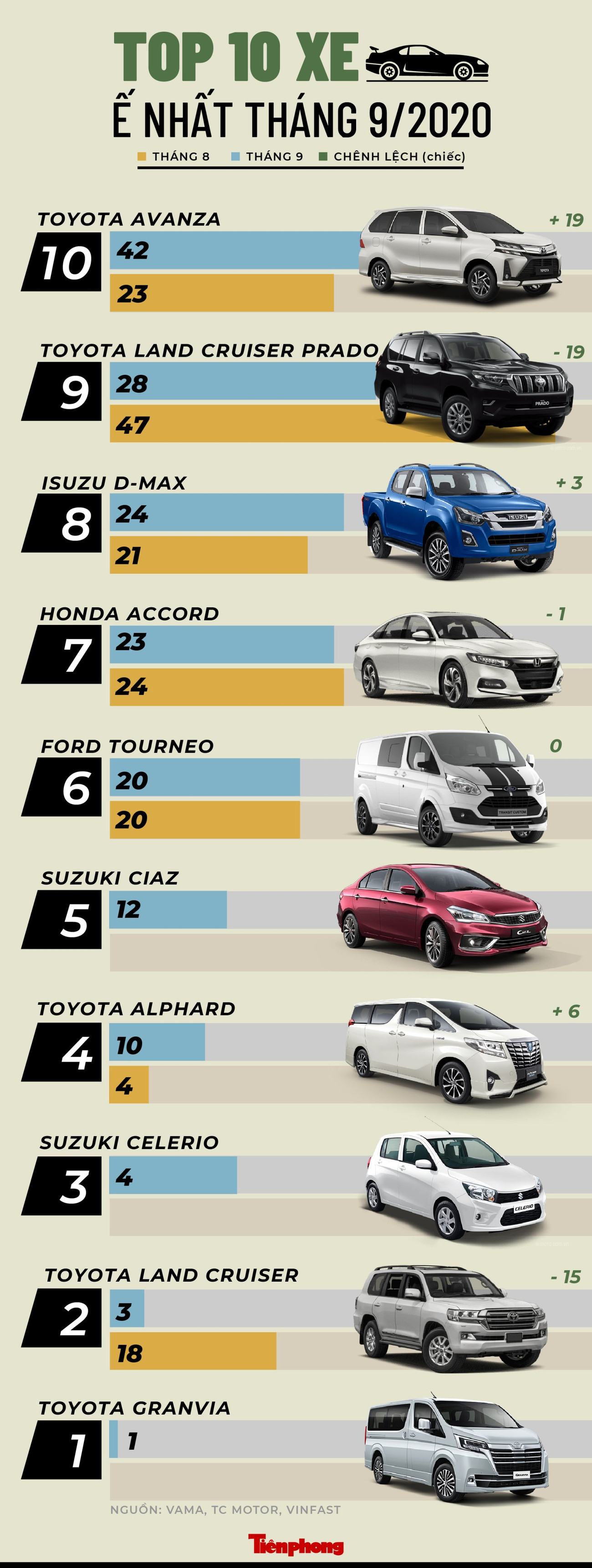 Top 10 ôtô bán chậm nhất tháng 9 tại Việt Nam