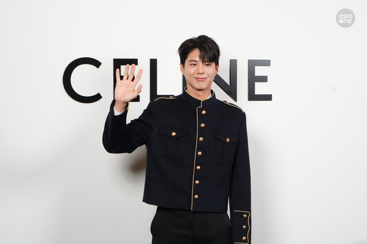 Park Bo Gum hiện đã có 3 năm đồng hành cùng nhà mốt Pháp. Trong lần dự sự kiện tại Singapore, nam đại sứ lựa chọn bộ trang phục mang đậm phong cách hoàng gia. Thiết kế áo jacket xanh than tạo điểm nhấn ở hàng cúc vàng gold tôn lên khí chất lịch lãm cho mỹ nam xứ Hàn.
