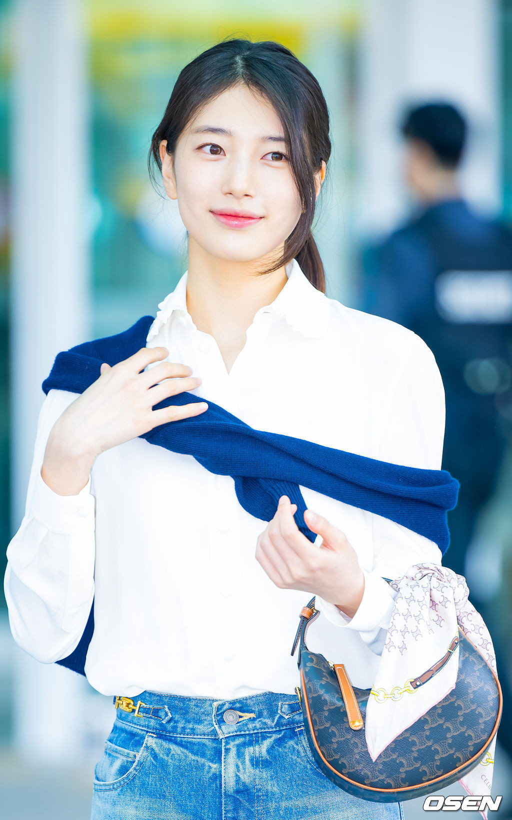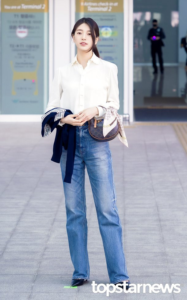 Một ngày trước, Suzy ghi điểm nhờ diện mạo tối giản, trang nhã khi xuất hiện tại sân bay. Visual của "tình đầu quốc dân" ở tuổi ngoài 30 trong trang phục áo sơ mi, quần jeans đơn giản nhận về cơn mưa lời khen.