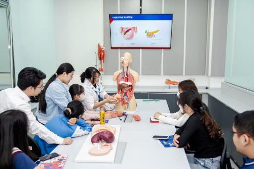 | Lớp học về Xử lý sơ cấp cứu và Giải phẫu cơ thể thu hút sự quan tâm của nhiều học sinh với bài học thực hành trực quan và sinh động. VinUni là trường đại học đầu tiên của Việt Nam và thứ hai Đông Nam Á đạt kiểm định chất lượng quốc tế ACGME-I, trang bị rất nhiều cơ sở vật chất tối tân phục vụ các ngành học thuộc Viện Khoa học Sức khoẻ. |