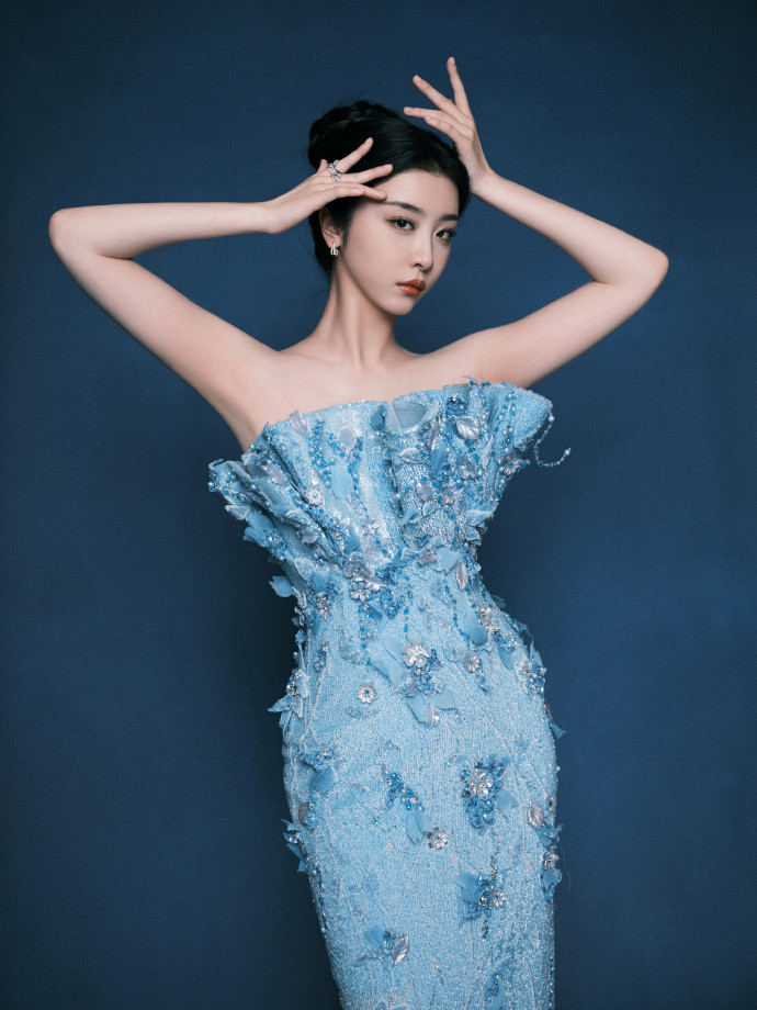 Triệu Tiểu Đường xuất hiện tại Thịnh điển Madame Figaro 2023 với thiết kế màu xanh ngọc đính kim cương thuộc BST Xuân Hè 2023 của thương hiệu Geyanna Youness. Tuy nhiên, kiểu búi tóc cao cùng dáng váy cúp ngực này lại không tôn lên vóc dáng thanh mảnh, cao ráo của cô, cổ và vai thiếu thanh thoát.