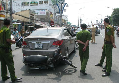 Theo một số người dân chứng kiến sự việc, khi lực lượng Công an phường tìm chủ phương tiện kiểm tra giấy tờ, thì bà T. từ trong quán cà phê 54 Mậu Thân bước ra với thái độ bất hợp tác, không chịu xuất trình giấy tờ. Sau đó, người đàn bà này bất ngờ lên xe điều khiển xe bỏ chạy về hướng cầu Quang Trung.