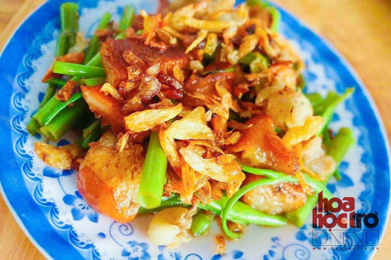 Phá lấu được xào cùng với rau muống và nước sốt me, điểm thêm chút hành phi và tóp mỡ giòn rụm trên mặt. Lòng bò mềm, thơm không quá dai như các quán khác. Hòa quyện cùng nước sốt me chua nhẹ, càng làm cho vị giác của bạn thêm kích thích.