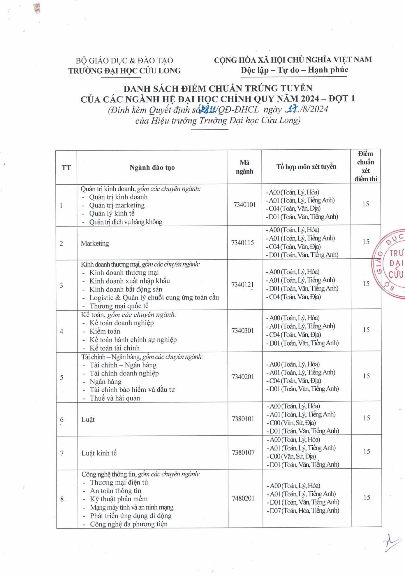 | Điểm chuẩn của Trường ĐH Cửu Long |
