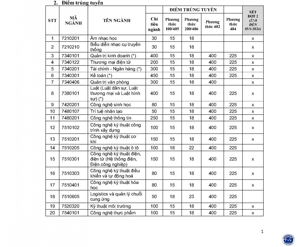 | Điểm chuẩn của Trường ĐH Trà Vinh |
