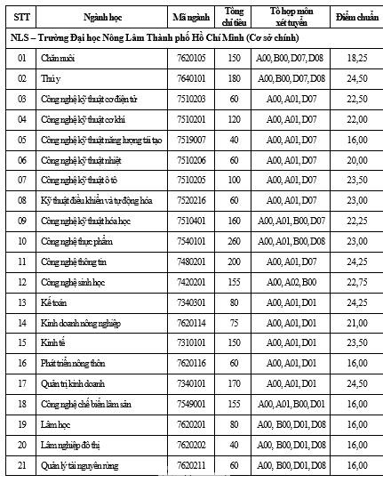 | Điểm chuẩn ĐH Nông Lâm TPHCM |