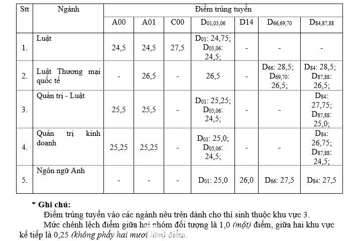 Cụ thể, ĐH Luật TPHCM có mức điểm chuẩn dao động từ 24,5 đến 28,5 điểm.