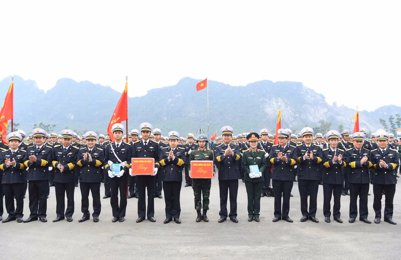 | Dịp này, Tư lệnh Trần Thanh Nghiêm và chỉ huy các cơ quan chức năng của Quân chủng Hải quân đã trao quà động viên, tiếp sức các nam, nữ quân nhân hoàn thành tốt nhiệm vụ. |
