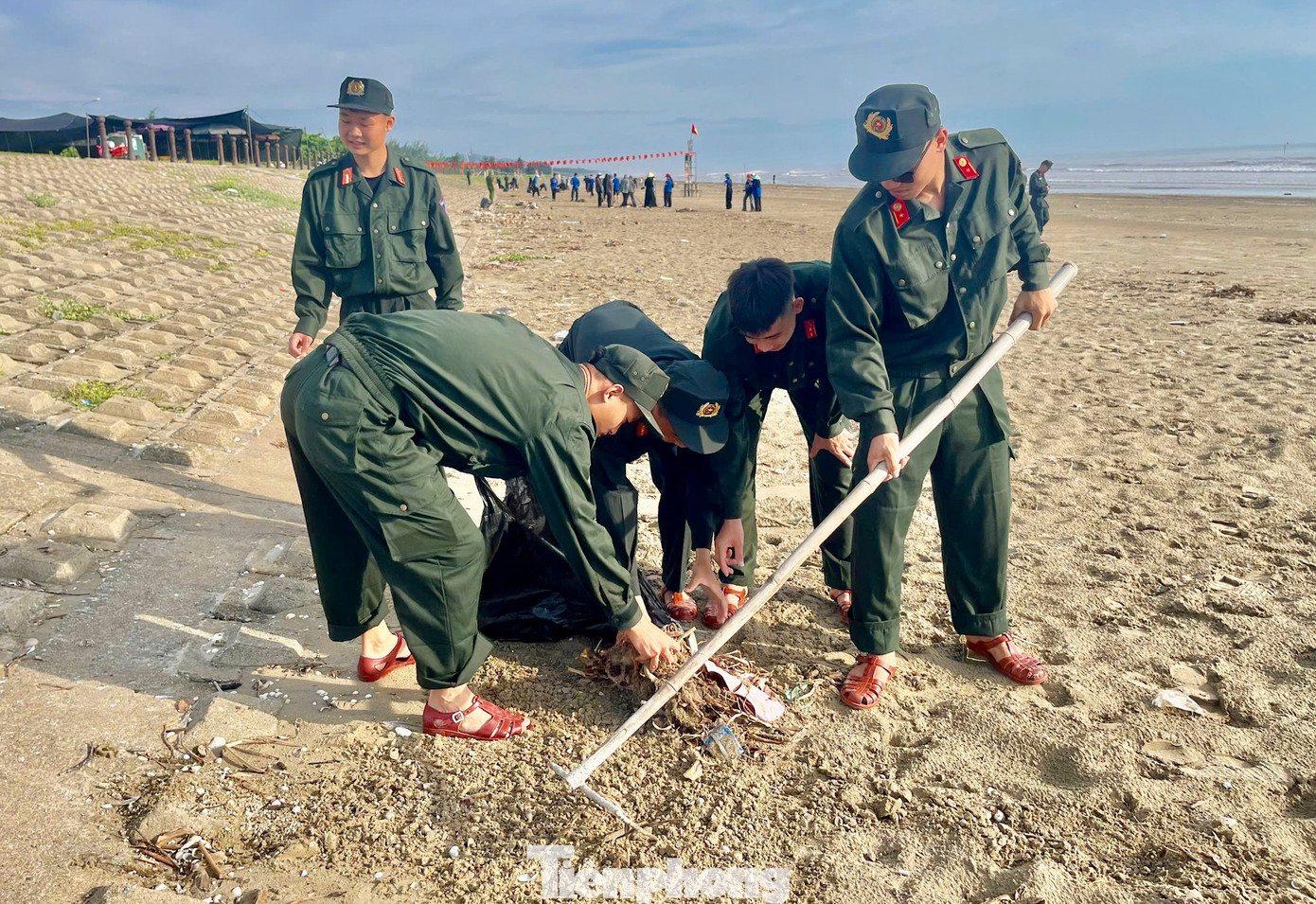 Với tinh thần xung kích, nhiệt huyết của tuổi trẻ, hơn 100 cán bộ đoàn thanh niên, cán bộ và chiến sĩ đã chia thành từng nhóm nhỏ, tổ chức dọn vệ sinh, thu gom rác thải, phân loại và xử lý rác đúng quy định dọc tuyến bờ Xuân Hải (thị trấn Lộc Hà).