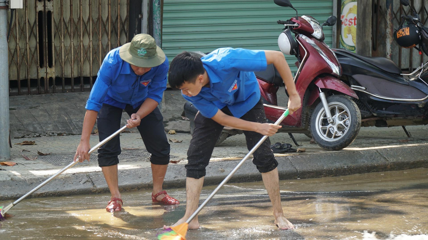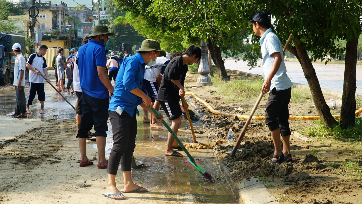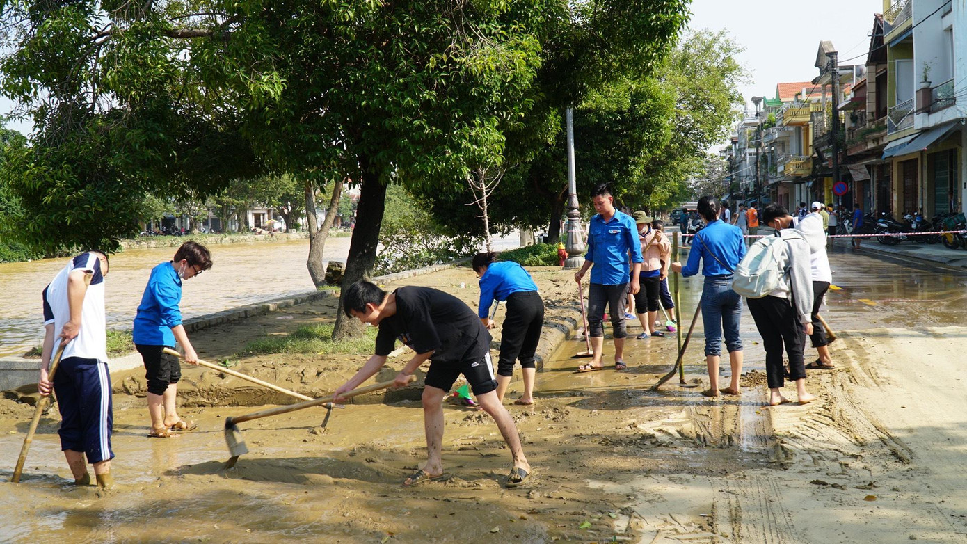Trong những ngày qua, các đơn vị Đoàn khối Cơ quan & Doanh nghiệp tỉnh, Thành Đoàn Huế, Đoàn Thanh niên Công an tỉnh, Đoàn Thanh niên Bộ Chỉ huy Quân sự tỉnh TT-Huế đã huy động hàng trăm lượt đoàn viên, thanh niên… cùng nhiều phương tiện cơ giới tham gia hỗ trợ dọn dẹp bùn đất, rác tồn lưu sau mưa lũ trên các tuyến phố Bạch Đằng (phường Gia Hội) và Huỳnh Thúc Kháng (phường Đông Ba), nhằm sớm khắc phục tình trạng ô nhiễm môi trường, ách tắc giao thông sau thiên tai.