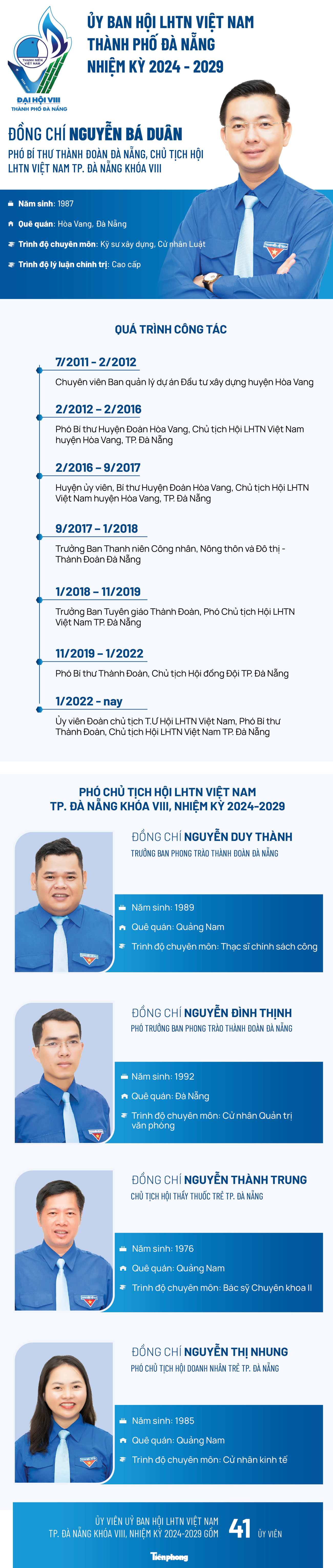 TPO - Đại hội đại biểu Hội LHTN Việt Nam TP. Đà Nẵng lần thứ VIII, nhiệm kỳ 2024 - 2029 đã hiệp thương chọn cử 41 anh, chị tham gia Ủy ban Hội, anh Nguyễn Bá Duân làm Chủ tịch Hội LHTN Việt Nam TP. Đà Nẵng lần thứ VIII, nhiệm kỳ 2024 - 2029.
