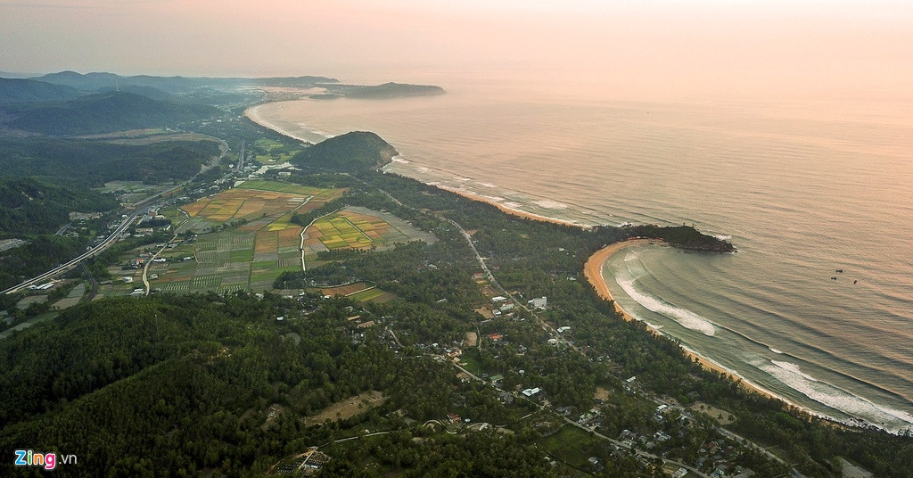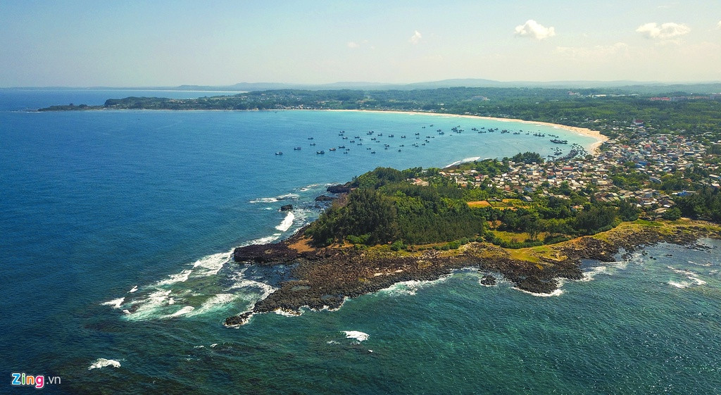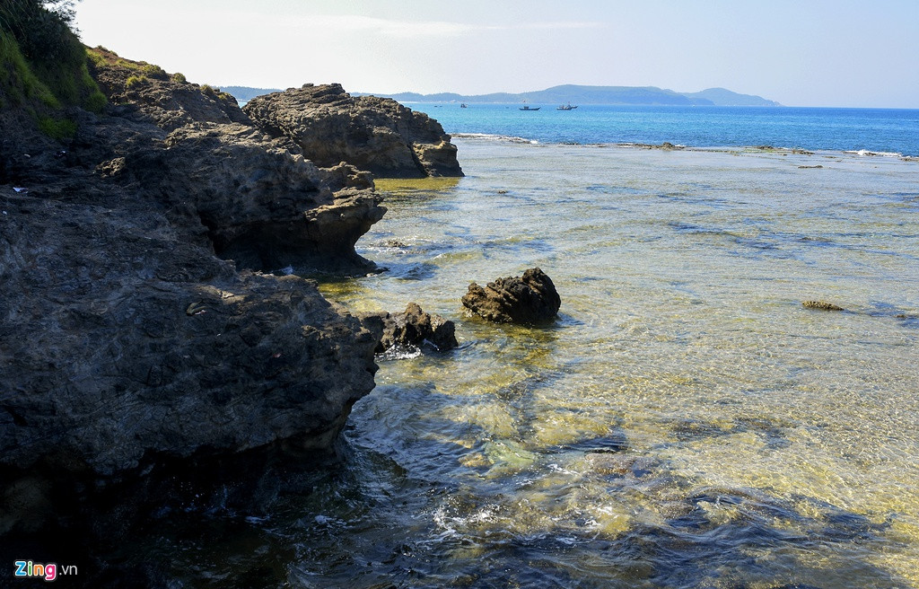 Dấu tích miệng núi lửa cổ nằm sát biển Ba Làng An, xã Bình Châu, huyện Bình Sơn. "Nếu biết cách bảo tồn và phát huy di sản thiên nhiên, khu vực này sẽ trở thành điểm đến hấp dẫn du khách và các nhà nghiên cứu địa chất trên thế giới", ông Thu nói.