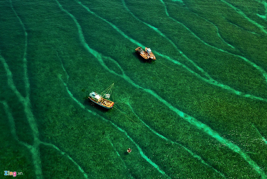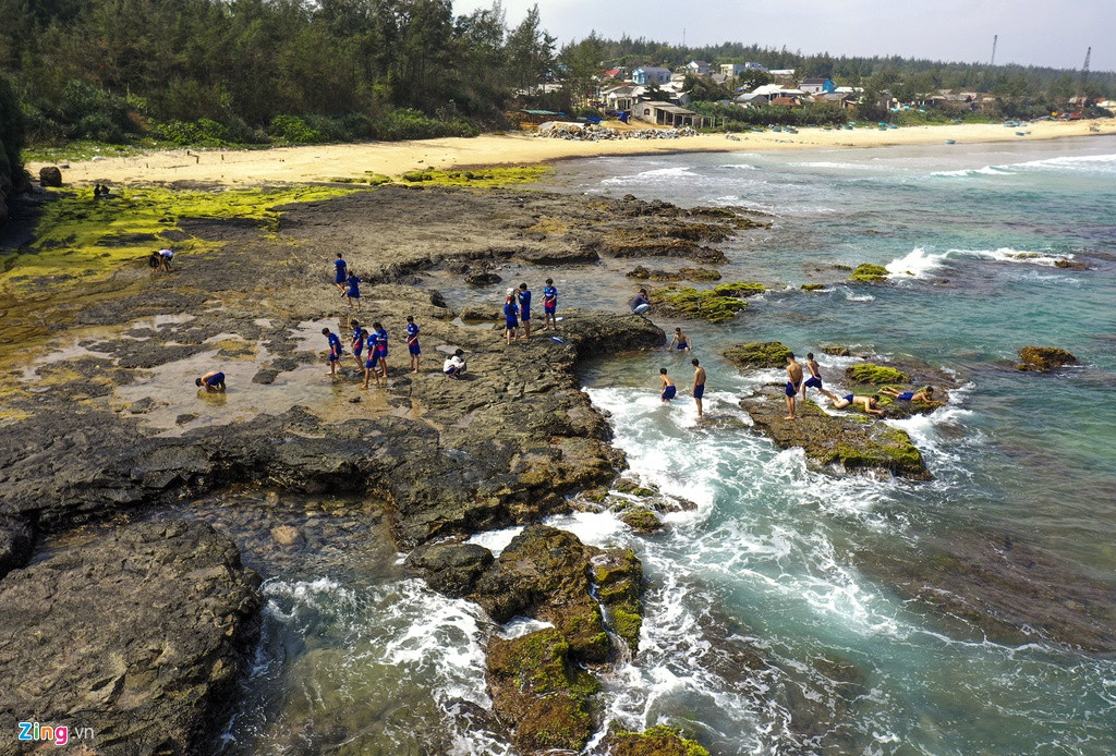 Tháng 3, trầm tích núi lửa nhuốm màu rêu xanh tạo bức tranh thiên nhiên tuyệt đẹp ở vùng ven biển Lệ Thủy, xã Bình Trị, huyện Bình Sơn.