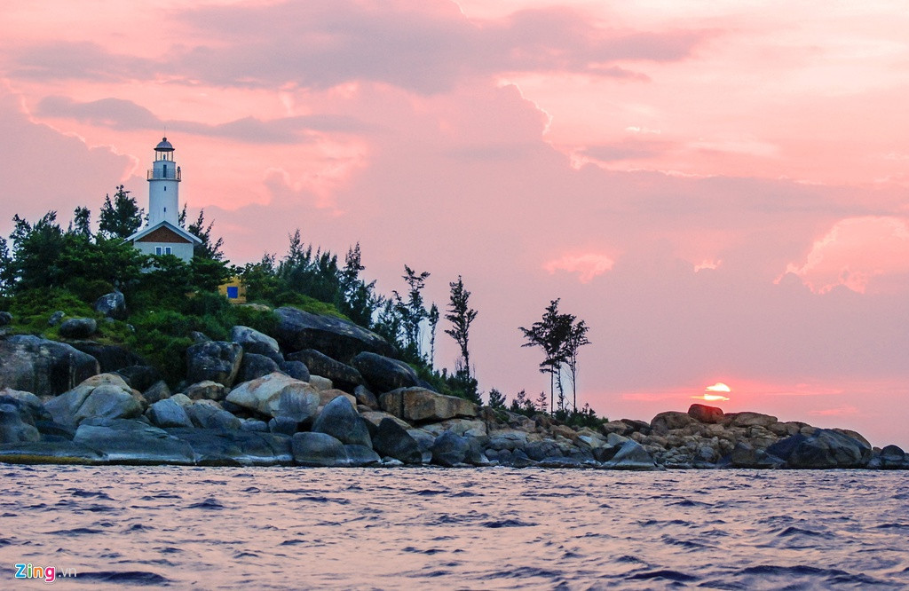 Hoàng hôn về bên ngọn hải đăng sát biển ở xã Bình Thuận, huyện Bình Sơn.