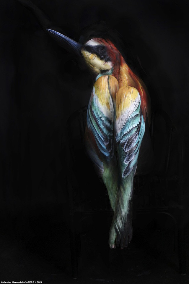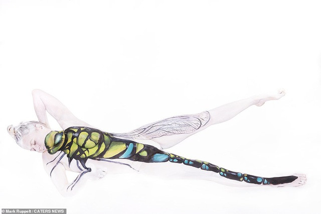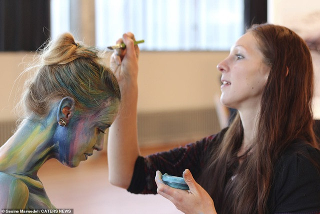 "Nghệ thuật 'body-painting' khác với vẽ tranh thông thường vì họa sĩ phải căn đúng việc tạo dáng, hình hài, ánh sáng, hắt bóng... trên cơ thể của một người mẫu để tạo ra hiệu ứng sống động”, nữ nghệ sĩ cho biết.