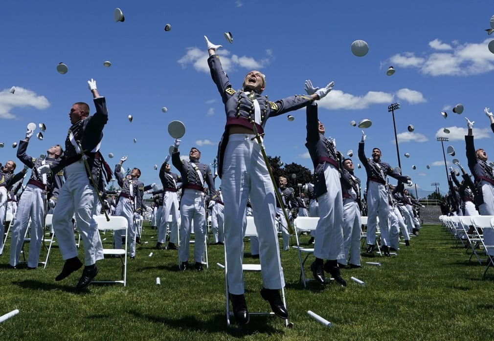 Các học viên của học viện quân sự quăng mũ vào cuối buổi lễ tốt nghiệp - nơi Tổng thống Mỹ Donald Trump làm diễn giả. (Ảnh: Timothy A Clary / AFP / Getty).