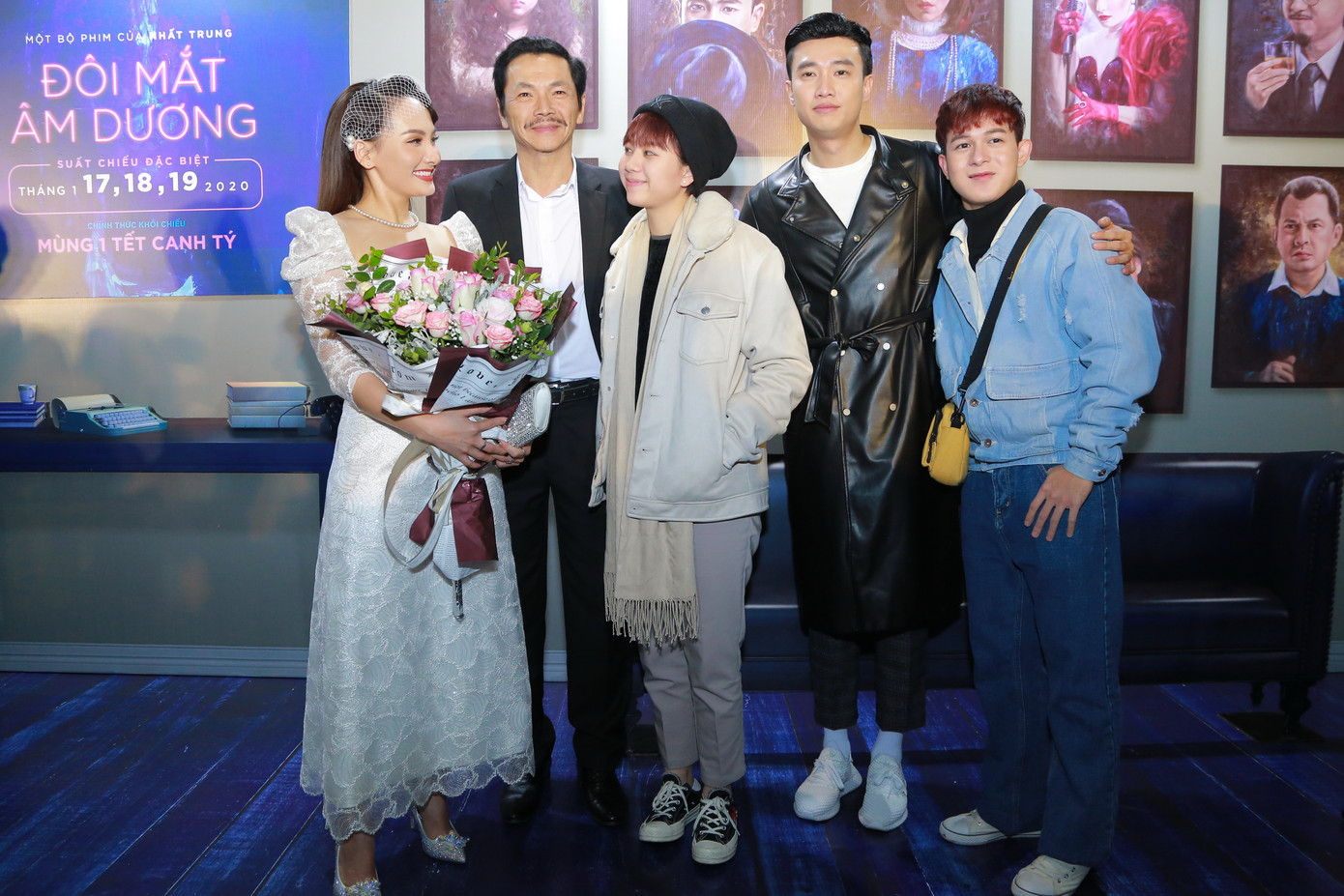 Tối ngày 18/1 ê kíp phim “Đôi mắt âm dương” gồm đạo diễn Nhất Trung, diễn viên Bảo Thanh-Quốc Trường nhận được sự ủng hộ của đông đảo khán giả, nghệ sỹ khách mời tại Hà Nội. Nữ diễn viên Thu Trang và nhiều thành viên của ê kíp không thể có mặt.