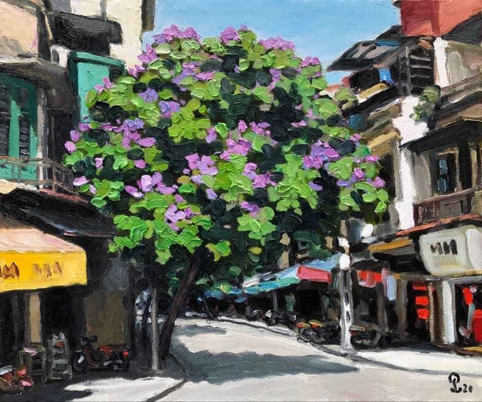 “Ủng hộ đuổi COVID-19” thu hút nhiều anh tài của làng hội họa như Phạm Luận, Phạm An Hải, Đào Hải Phong… Phạm Luận “đại gia” ẩn mình gửi đến chương trình tác phẩm “Hà Nội phố”, sơn dầu trên toan, size 45x55 cm. Bức tranh nhỏ gợi nhớ Hà Nội thuở xa xăm yên bình, với tán bằng lăng nở hoa tím ngắt trong một ngày nắng đẹp. Tranh Phạm Luận dễ cảm, dễ đụng đến trái tim của người thưởng ngoạn. Cuối cùng “Hà Nội phố” đã về tay một người phụ nữ yêu hội họa với giá 39,5 triệu đồng.
