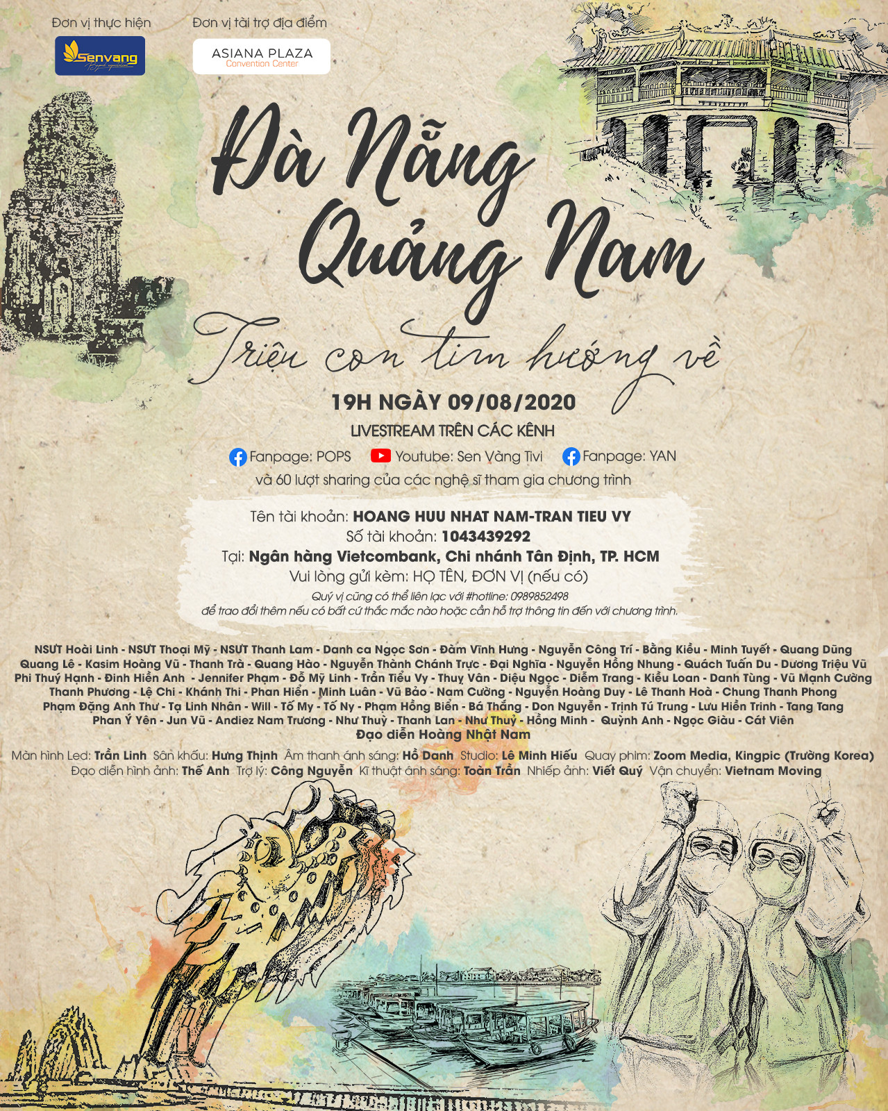 Bên cạnh đó, đêm nhạc sẽ là nơi kết nối các điểm cầu từ TP.HCM, Đà Nẵng, Hà Nội cho đến các quốc gia khác nơi có các anh chị em nghệ sĩ đang sinh sống. Đây cũng là cơ hội để những người con xa xứ được bày tỏ cảm xúc của mình cũng như thể hiện tình đoàn kết giữa cộng đồng người Việt trong lẫn ngoài nước với nhau. Khán giả sẽ được gặp gỡ trên sóng trực tuyến những cái tên đình đám như: NSƯT Hoài Linh, NSƯT Thoại Mỹ, NSƯT Tham Lam, Ca sĩ Đàm Vĩnh Hưng, Hoa hậu Đỗ Mỹ Linh, ca sĩ Ngọc Sơn, Kasim Hoàng Vũ, vợ chồng kiện tướng Khánh Thi - Phan Hiển, nhóm MTV, Nam Cường, Dương Triệu Vũ, Hồ Trung Dũng, Will, Jun Vũ, Tố My - Tố My, Lưu Hiền Trinh, MC Đại Nghĩa,… Các nghệ sĩ hải ngoại: Bằng Kiều, Nguyễn Hồng Nhung, Minh Tuyết, Hoa khôi Như Thuỳ, Á hậu Diễm Trang,...