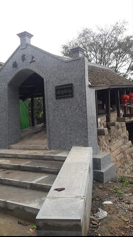 “Phần mái đã được sửa đúng theo nguyên bản lưu trong hồ sơ di tích, có đại diện Ban quản lý Di tích và danh thắng giám sát. Tuy nhiên sau đó chính quyền địa phương vận động kinh phí xã hội hóa trát lại vữa, rồi “hiện đại hoá” cây cầu bằng sơn giả đá phần cổng; lát lại đá xanh phần bậc thang bằng gạch. Chính quyền địa phương tự ý làm, không báo cáo”, ông Dũng nói.