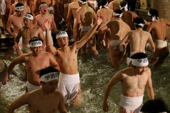 Khoảng 10.000 người tham gia lễ hội đều là nam giới, tất cả chỉ mặc một chiếc khố và đi tất màu trắng, bên cạnh một tấm băng trên đầu.